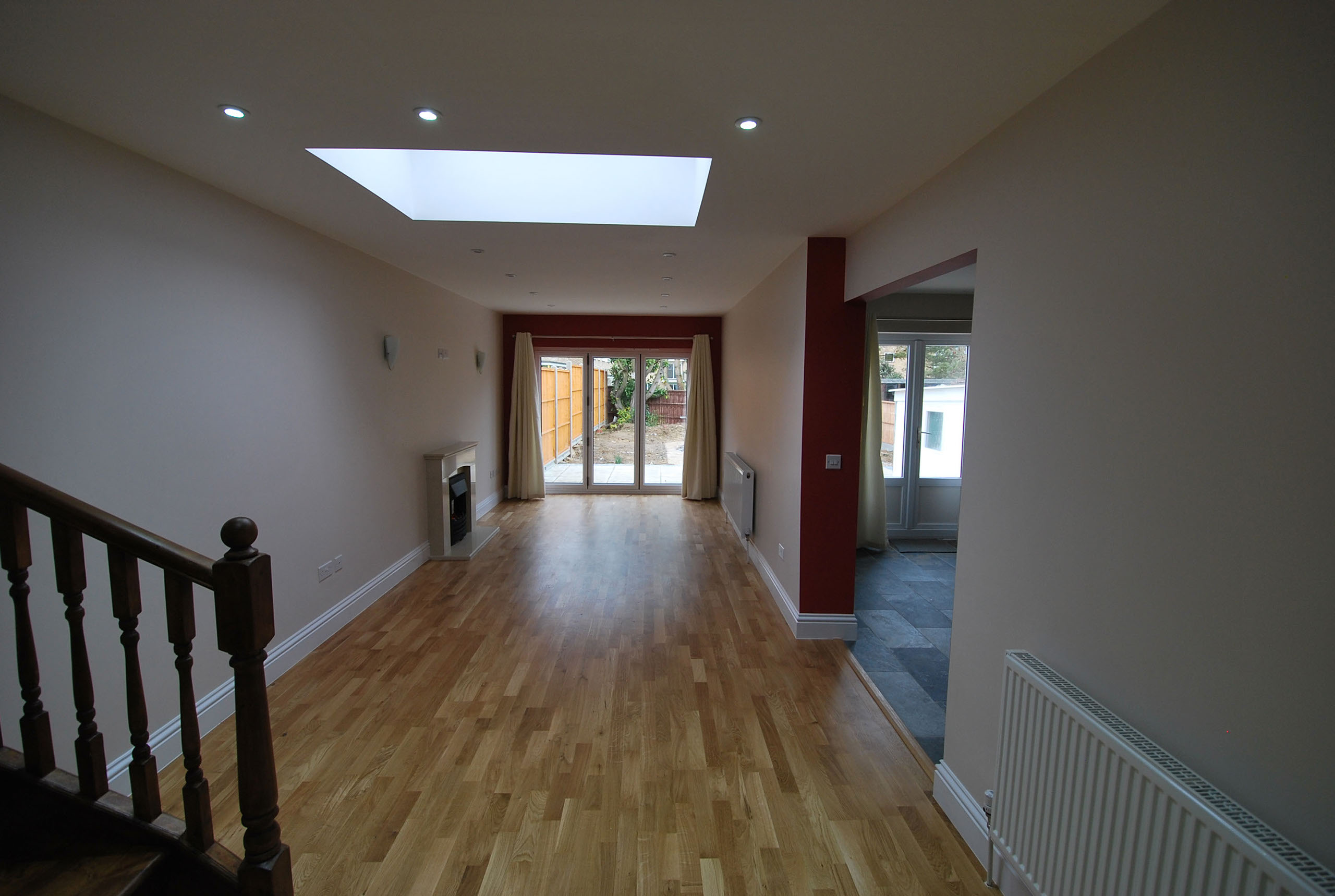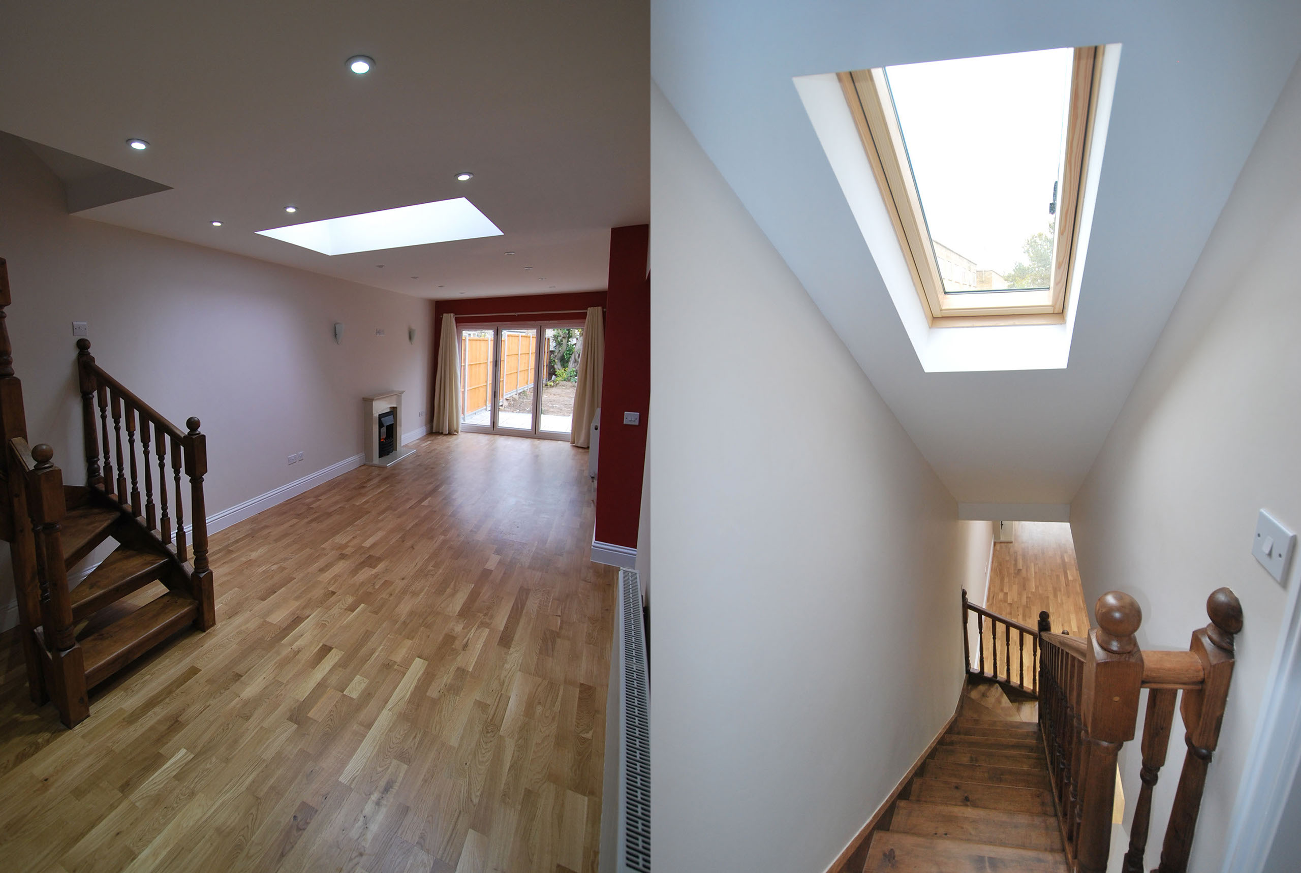 The roof space; with the inclusion of dormer windows, velux rooflights and careful planning, was converted into master bedroom with ensuite shower room. The new naturally lit stair access leads down into a generous living room with large glazed roof lantern and spacious open-plan kitchen diner, each room leading through bi-fold doors into the rear garden and hard landscaped patio area.